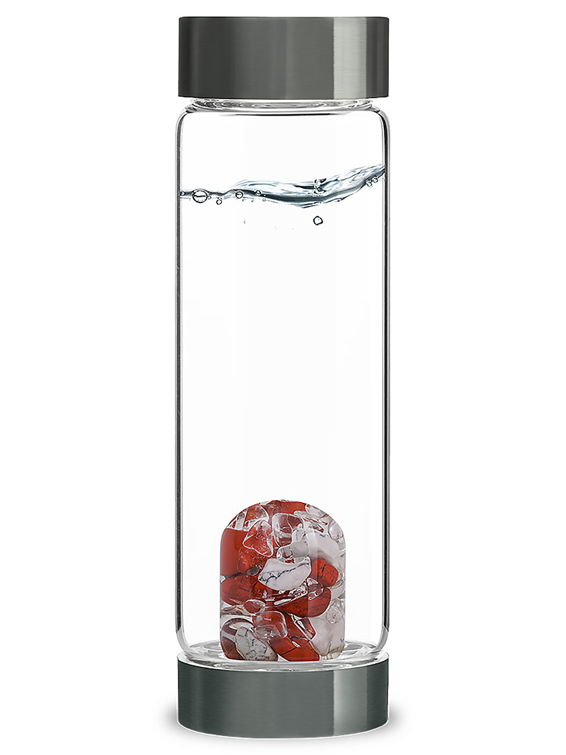 Designed in the German Alps, the VIA bottle features a variety of carefully hand-selected gemstones and is made from premium borosilicate, pollutant-free glass. Perfect for everyday use, as the gems are encased in a hand-crafted, interchangeable glass container that prevents any pollution of the water by the gems while preserving all their structured benefits. The VitaJuwel method relieves you of bothersome scrubbing and cleaning of the gems. The exquisite stones in your ViA stay bright and shiny over the years.