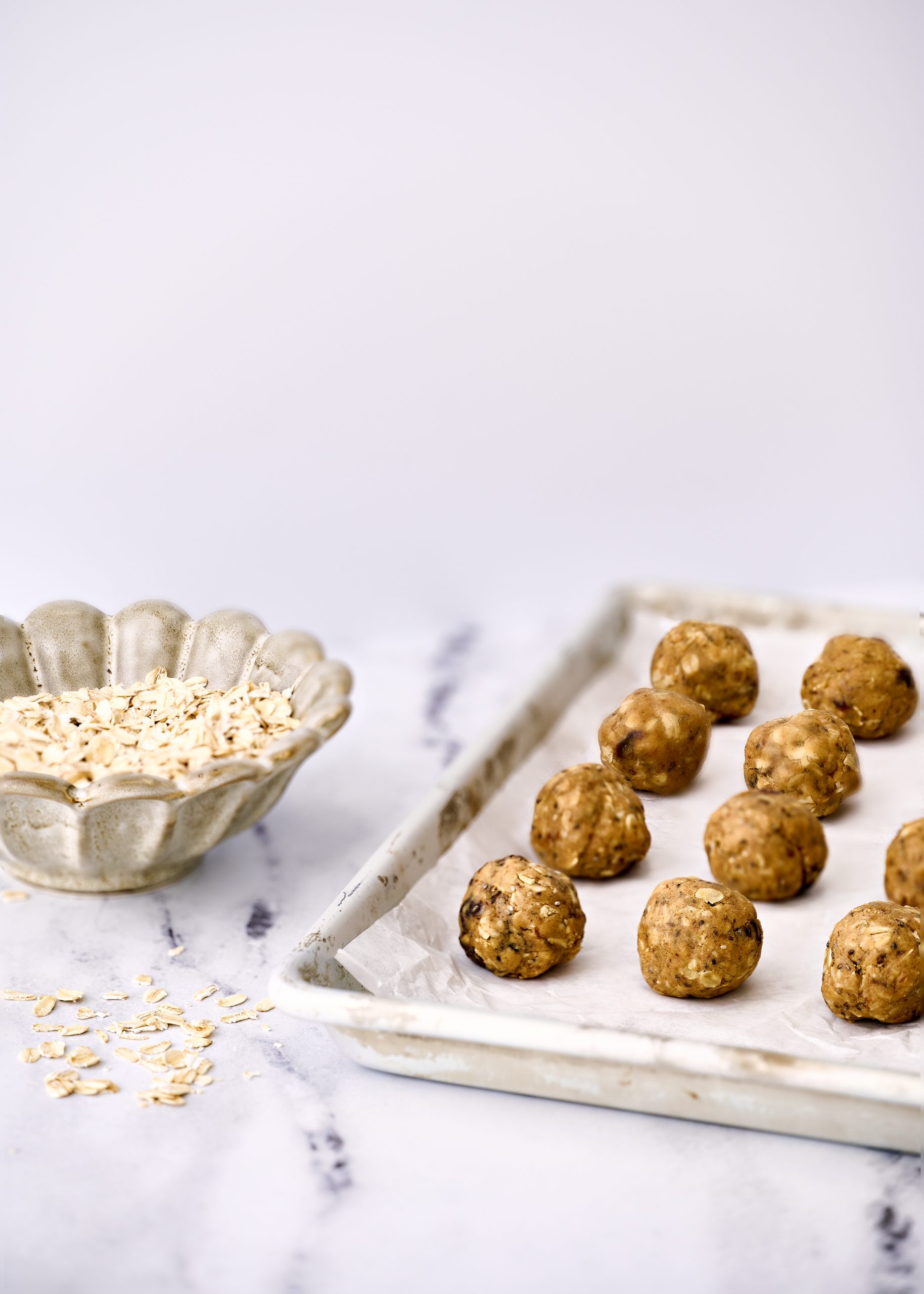 - Roll into 8 balls by firmly squeezing the dough. If the dough is too dry, add a splash of water to help shape the balls.